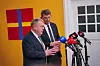 KRISEMØTE: Danmarks utenriksminister Lars Løkke Rasmussen og forsvarsminister Troels Lund Poulsen møtte pressen etter krisemøtet i Folketingets utenrikskomité.(Foto: Emil Helms / Ritzau Scanpix / NTB)