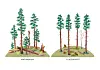 hastigheter i de to skogtypene, noe som påvirker hvor lang tid karbon lagres i død