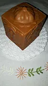 den normalt middels bløt, sylindrisk formet ost med brun skorpe. Den har i