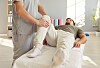 Se for deg to kuler med forskjellig størrelse på en trampoline.